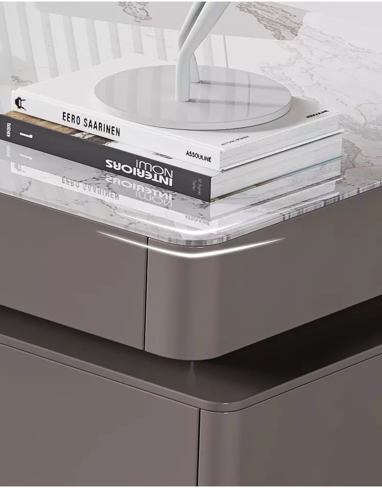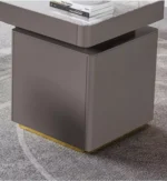 الطاولة متوفرة بلون رمادي أنيق.