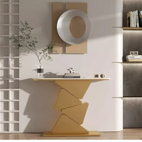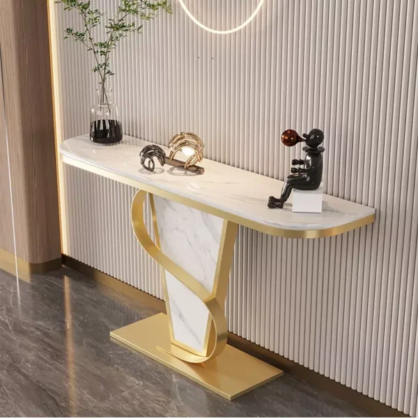 طاولة كونسول رائعة بتصميم أنيق تجمع بين الرخام الفاخر والمعدن القوي. مثالية لإضافة لمسة فاخرة إلى غرفة المعيشة أو المدخل. تتميز بسطح رخام عالي الجودة وهيكل معدني بلون ذهبي، مما يضمن متانة وجمال يدومان طويلاً. سهلة التنظيف بمسحة رقيقة، وتأتي بأبعاد مثالية تناسب مختلف المساحات. ضمان سنتين ضد عيوب التصنيع في دول مجلس التعاون الخليجي. لون الرخام أبيض أو رمادي.