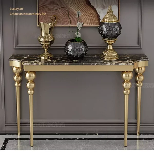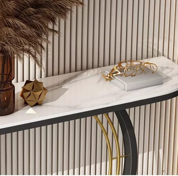 كونسول رخام فاخر يضفي لمسة من الأناقة والفخامة على منزلك. يتميز بتصميم عصري وأنيق مع سطح من الرخام عالي الجودة وهيكل معدني قوي. مثالي لتجميل مداخل المنزل أو غرفة المعيشة، يمكن استخدامه كطاولة كونسول أو طاولة مدخل لتنظيم الأغراض الصغيرة.