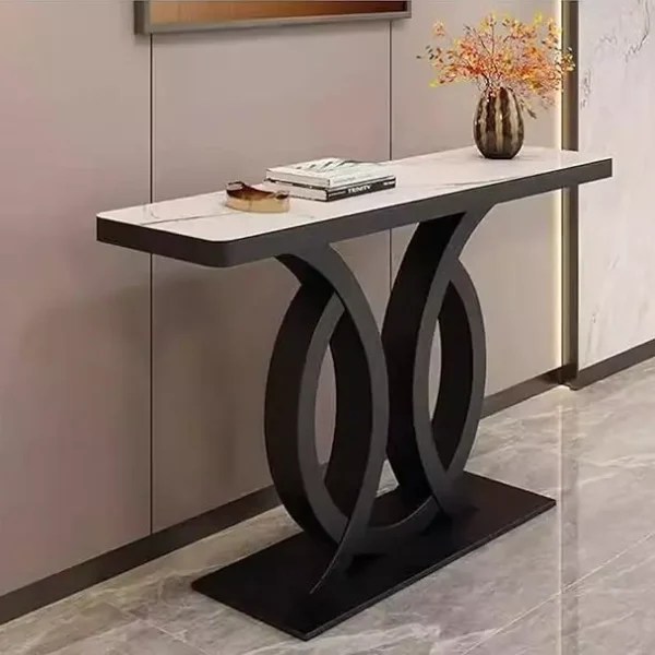 اكتشف روعة تصميم هذا الكونسول الفاخر، المصنوع من هيكل معدني قوي وسطح رخامي أنيق. يناسب غرفة المعيشة والمداخل، ليضفي لمسة عصرية وفخمة على مساحتك. متوفر بألوان جذابة مثل الذهبي والأسود، مع سطح باللون الأبيض أو الأسود، ليكمل ديكور منزلك بانسجام. سهل التنظيف بمسحة رقيقة ويأتي بضمان لمدة سنتين ضد عيوب التصنيع.