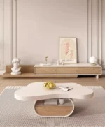 طاولة قهوة وطاولة تلفزيون خشبي لإضافة لمسة للبيت. يمكنك تنظيفها بمسحة رقيقة فقط عند الحاجة. مثالية للمنازل العصرية وتناسب مختلف الأذواق والديكورات.