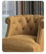 مصنع الهيكل من خشب هندسي وخشب زان روماني عالي الجودة، مما يضمن المتانة وطول الأمد. محشو من اسفنج عالي الجودة ليمنحك الراحة القصوى عند الجلوس. مغطى من قماش عالي الجودة، يضفي لمسة من الفخامة والأناقة على الكرسي.