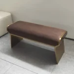 يتميز بنش المقعد بقاعدته المصنوعة من الاستيل المتين، مما يضيف لمسة فريدة وجميلة للمنزل. يمكن تنظيفها بمسحة رقيقة فقط عند الحاجة، مما يجعلها عملية وسهلة الصيانة. خامة المنتج مصنوعة من الاستيل المتين الصلب عالي الجودة، ومغطاة بالجلد الفاخر، مما يضفي لمسة من الرقي والفخامة على التصميم.