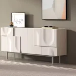 إذا كنت تبحث عن قطعة تجمع بين الجمال والأداء، فإن طاولة البوفيه هذه هي الخيار الأمثل. مصنوعة من خشب هندسي وخشب زان روماني عالي الجودة، مما يضمن لك المتانة والجودة العالية.