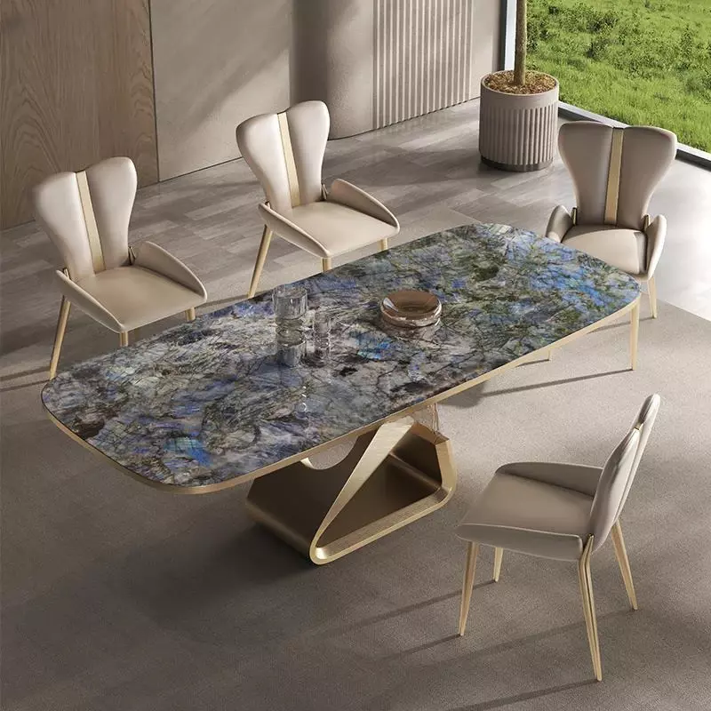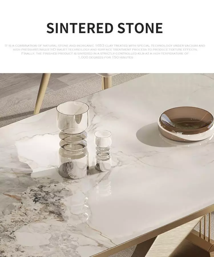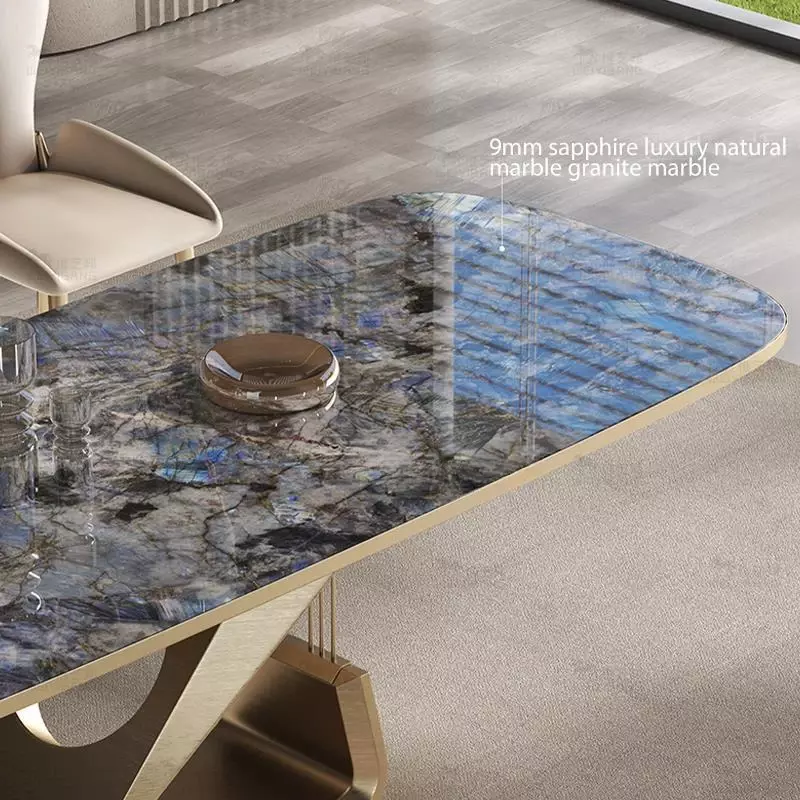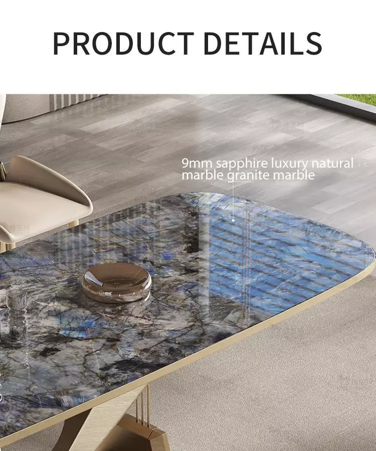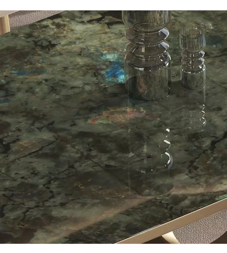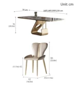هذه الطاولة المميزة مصنوعة من الرخام، مما يضيف لمسة من الأناقة والفخامة إلى غرفة الطعام الخاصة بك. يمكنك بسهولة تنظيفها باستخدام مسحة رطبة عند الحاجة، مما يجعلها مثالية للاستخدام اليومي.