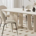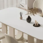 طاولة الطعام هي قلب غرفة الطعام ومكان التجمع والتواصل في المنزل. تتميز طاولة الطعام المودرن هذه بتصميم هندسي متقن واستخدام خشب زان روماني عالي الجودة، مما يضفي عليها متانة وأناقة في الوقت نفسه.