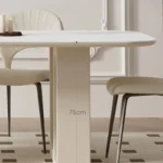 لا تكتمل تجربة تناول الطعام دون كرسي مريح وأنيق. يتميز كرسي الطاولة بتصميمه البسيط والأنيق، ومغطي بطبقة من الجلد الإيطالي الفاخر، والمميز المبطن بالإسفنج عالي الكثافة، مما يضمن راحة لا مثيل لها أثناء الجلوس.