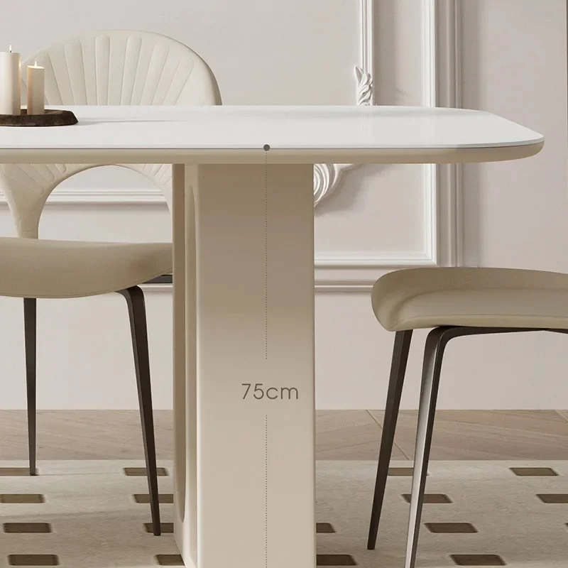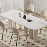- الكرسي: مصمم بطريقة تضمن الراحة والاستمتاع بوقت الطعام، حيث يأتي مغطى بطبقة من الجلد الإيطالي الفاخر، ومبطن بالإسفنج عالي الكثافة.
