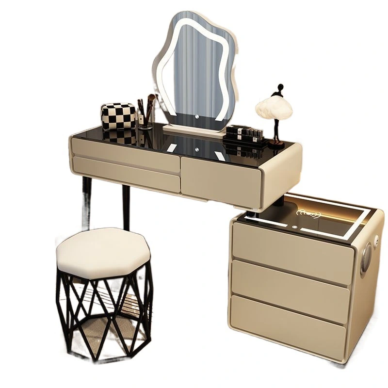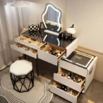 تسريحة الطاولة تضيف لمسة من الرقي والفخامة إلى غرفة نومك. بفضل تصميمها المبتكر، توفر لك هذه الطاولة مكانًا مثاليًا لتخزين أغراضك الشخصية بأناقة ونظام، مما يسهم في الحفاظ على جمال ونظام الغرفة.