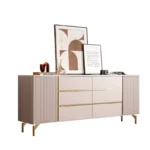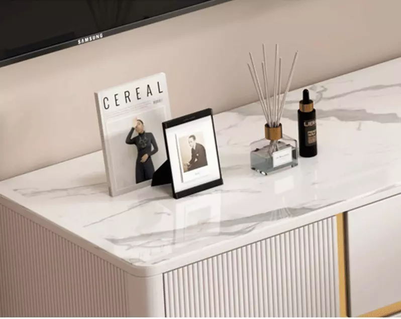 مصنع الهيكل من خشب هندسي وخشب زان روماني عالي الجودة، السطح من رخام عالي الجودة، والأرجل من معدن قوي عالي الجودة.