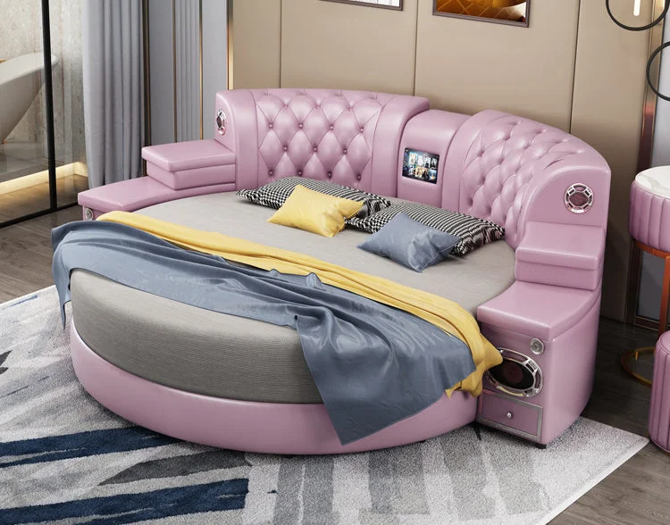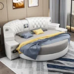 يضفي السرير الدائري طابعًا استثنائيًا على أي غرفة نوم، مما يجعلها مكانًا مثاليًا للاسترخاء والاستمتاع بأوقات الراحة.