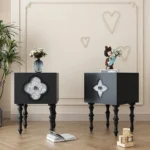 تصنع هذه الطاولة الجانبية للسرير من الخشب الهندسي وخشب الزان الروماني عالي الجودة، مما يمنحها متانة وقوة تحمل عالية، بالإضافة إلى مظهر فاخر يضيف لمسة جمالية إلى الغرفة.