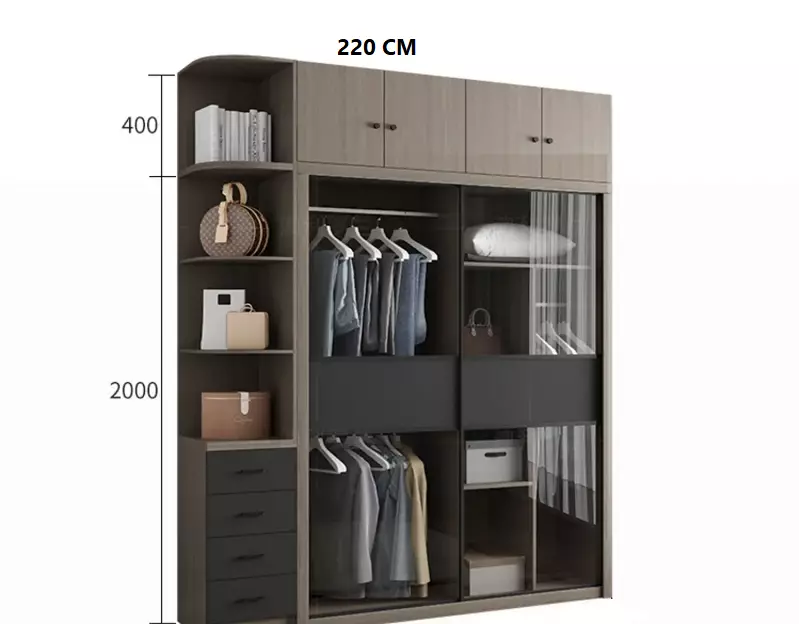 الخزانة مصنوعة من خشب هندسي وخشب زان روماني عالي الجودة مع زجاج عالي الجودة