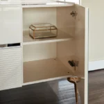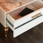 هيكل مصنع من خشبي هندسي وخشب زان روماني عالي الجودة مع اقدام من الستيل المذهب الصلب.