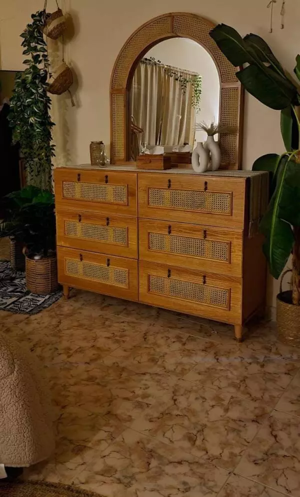 هذه الغرفة تتميز بتصميم اسكندنافي يجمع بين البساطة والجمال، حيث الخشب الهندسي وخشب الزان الروماني يضفيان لمسة دافئة وطبيعية على الغرفة.