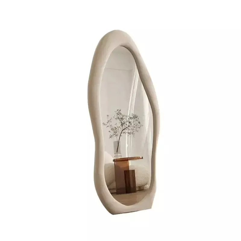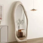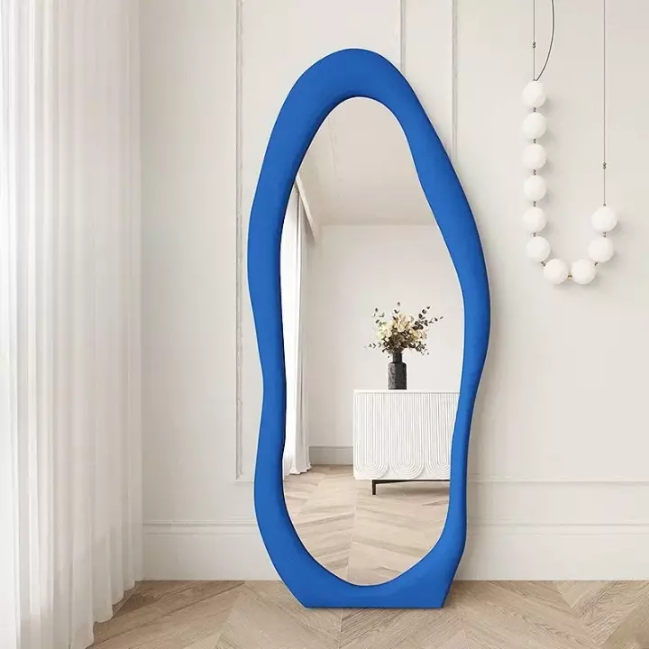 إذا كنت تبحث عن مرايا تتميز بالأناقة والتصميم الفريد، فإن المرايا الطويلة ذات الشكل المنحني هي الخيار الأمثل. هذه المرايا ليست فقط عملية ولكنها أيضاً قطعة فنية تضفي جمالاً على أي غرفة توضع فيها. انحناءاتها تعكس الضوء بشكل جميل وتضيف بعداً إضافياً للديكور.
