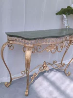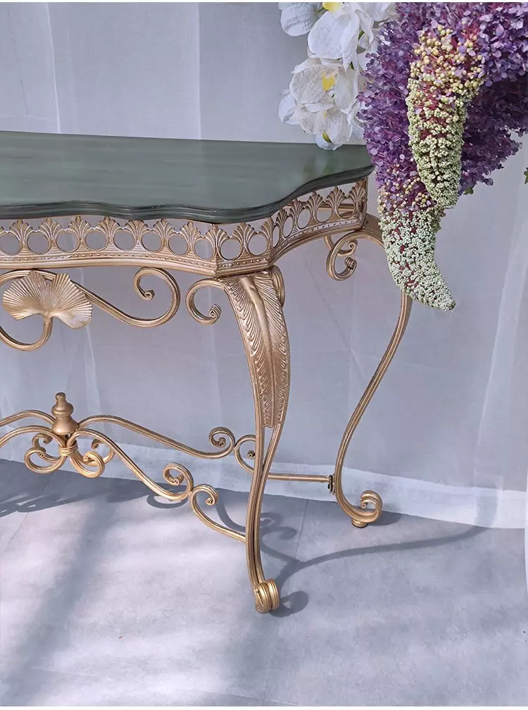 تجمع هذه الطاولة بين التصميم الكلاسيكي والجودة العالية. لون المعدن المتاح فضي أو ذهبي يضيف لمسة من الفخامة، بينما يمكنك اختيار السطح بالألوان الأخضر أو البني لتتناسب مع ديكور منزلك.