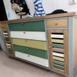 استمتع بتصميم فريد لخزانة الأدراج المصنوعة من خشب عالي الجودة، والتي تتميز بأدراجها الواسعة والسهلة الفتح. تعد هذه الخزانة خيارًا مثاليًا لتنظيم أغراضك اليومية بشكل جميل وعملي.
